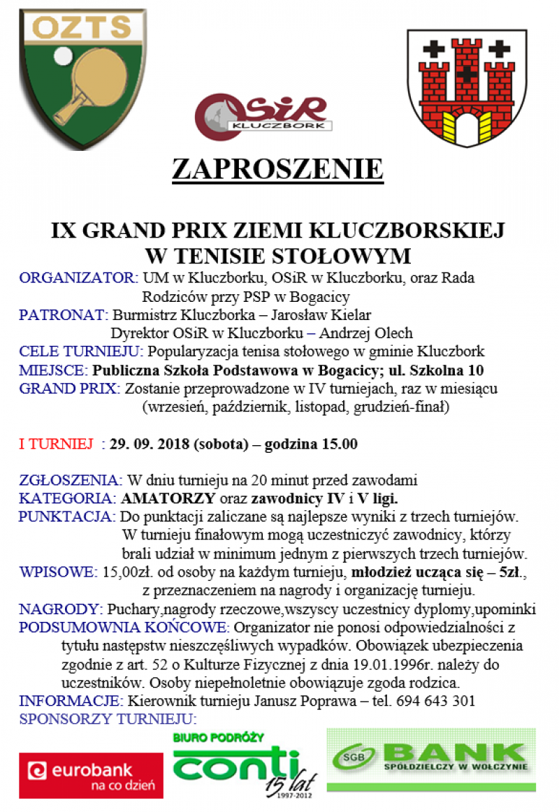 IX GRAND PRIX ZIEMI KLUCZBORSKIEJ W TENISIE STOŁOWYM