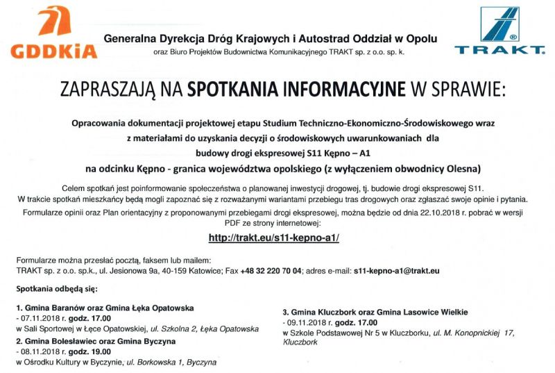- Przebudowa drogi gminnej (niepublicznej) od drogi krajowej S11 w Gotartowie do ul.XXX-lecia w Kujakowicach Górnych