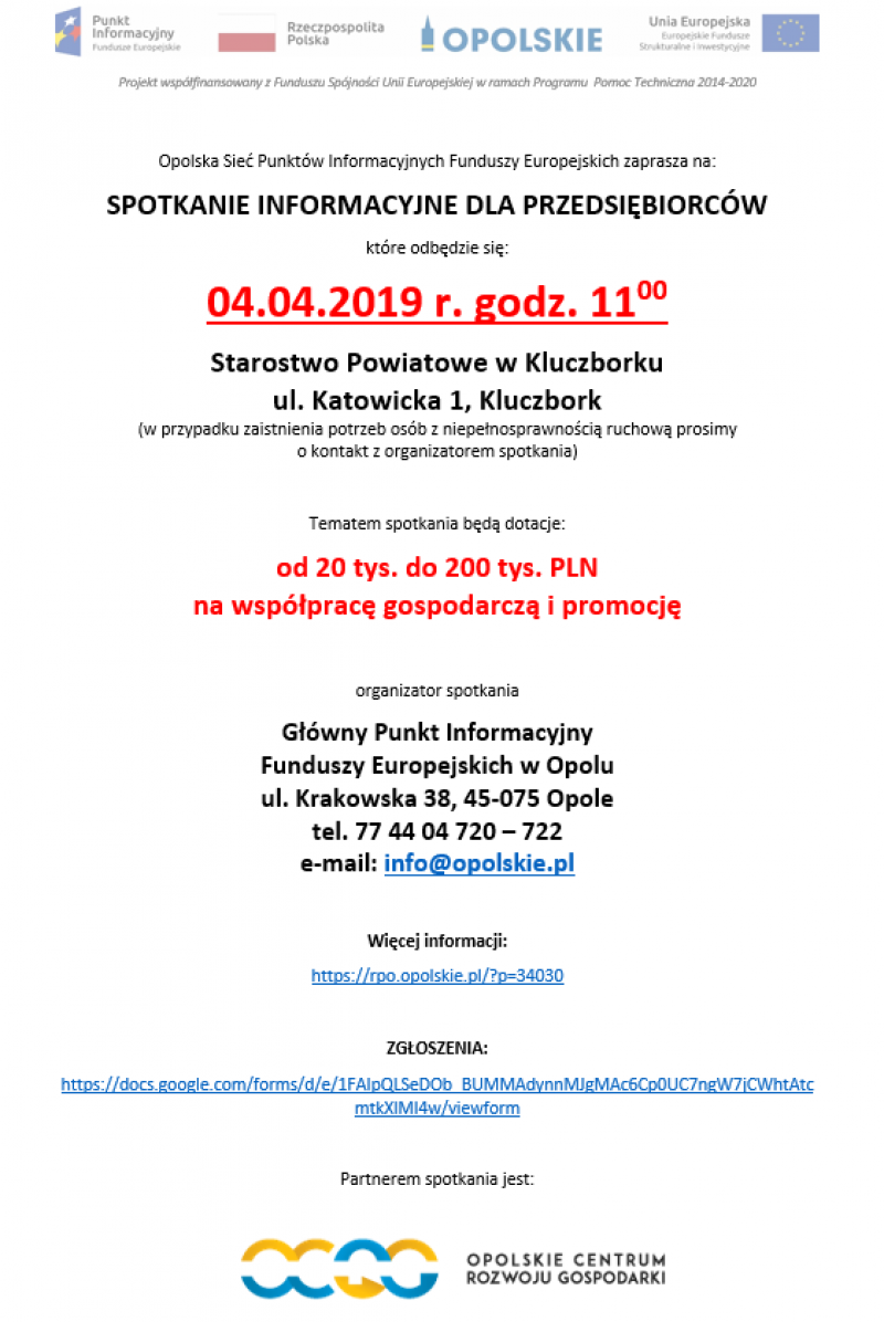 Spotkanie informacyjne dla przedsiębiorców dot. działania 2.4 RPO WO 2014-2020 w Kluczborku